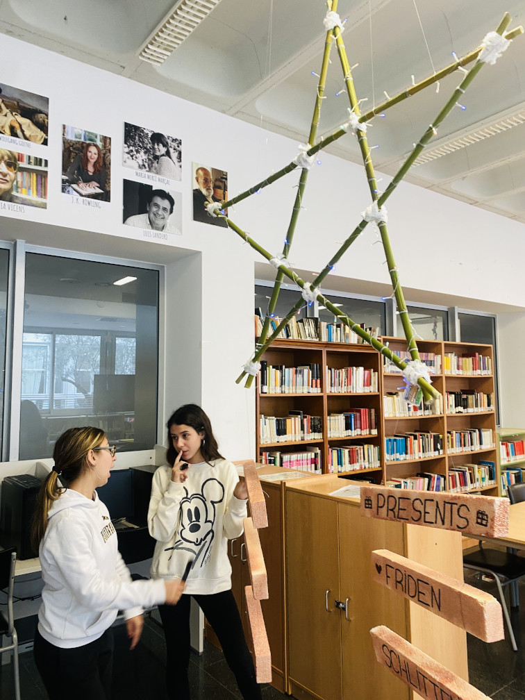 Enguany hem penjat una estrella ben alta, amb llums colorits i estrelles brillants, fetes pels alumnes amb molt de carinyo.